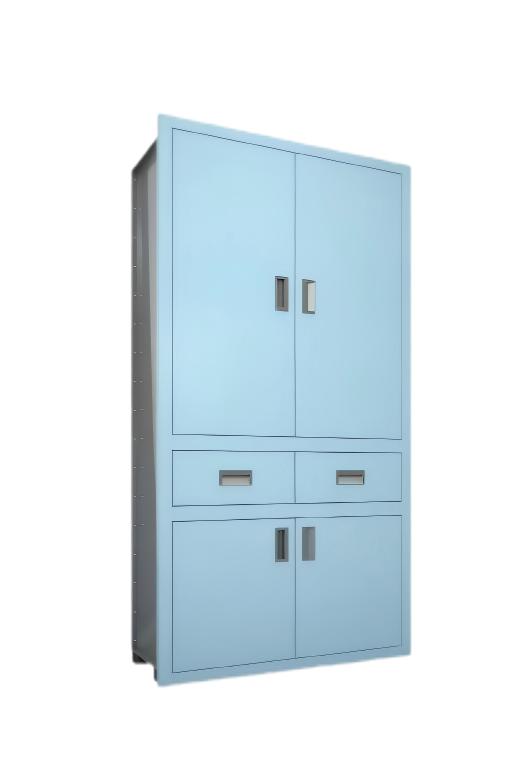 The surface frame is made of 1.2mm thick electrolyticsteel plate,which is welded,polished,and then sprayedwith plastic;The body is made of 1mm thick stainlesssteel wire drawing plate;Upper and lower spray moldedsteel doors,two drawers in the middle,equipped withsilent buffer rails;Equipped with glass laminates,heightcan be freely adjusted;The size of the folding edge ofthe face frame is the same as that of the electrolyticsteel plate,keeping the wall flat.