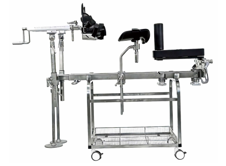 The entire frame is made of 304 stainless steel with a double-joint design. The end teeth at key positions are CNC-machined for precise locking, meeting the requirements of different surgical fields of view. The fluoroscopy-compatible trapezoidal base plate is adjustable in multiple positions, suitable for more patient positioning needs and adaptable to various surgical scenarios.